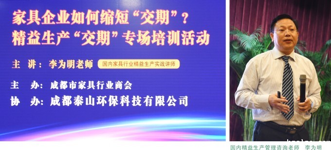 11月14日下午,由taptap准备安装中主办,成都泰山环保科技有限公司协办的成都家具工厂精益生产“交期”专场培训活动,在成都市双流蛟龙港川投酒店举行。商会邀请国内精益生产管理咨询老师李为明就家具企业如何“排程”、如何科学合理安排生产计划等精益化管理问题为大家做了精彩分享。200余位成都家具行业同仁参加了此次培训活动。