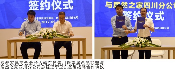 成都沃克家具、得一家具、香木阁家具等企业负责人在签约仪式纷纷发表自己的观点,相信成都家居名品联盟和居然之家的品牌以及搭建的平台的理念能够助力川派家居企业的发展,也希望居然之家能够走访各个川派名品家居联盟企业给予指导和意见,同时也能给予川派名品家居联盟企业更多的发展空间和支持,川派名品家居联盟企业一定会与居然之家一起抓住这个机遇,创造更多商机。