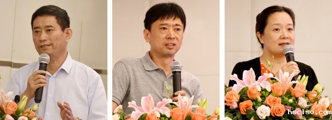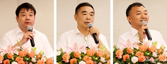 成都市家具商会 会长 古皓东 讲话(左)商会名誉会长 成都天子集团董事长 杨家荣 讲话(中)商会名誉会长 成都明珠家具公司总裁 王建斌 讲话(右)