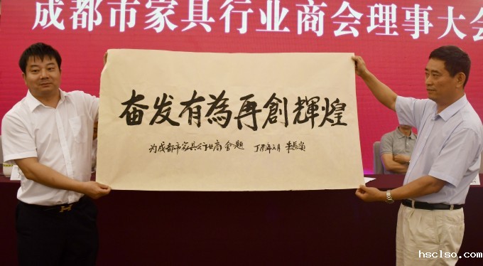 中国家具协会理事长朱长岭对商会新当选的新一任领导班子表示祝贺。他指出,家具行业要顺应市场的变化,要树立环保意识,遵守环保政策,才能在新一轮竞争中处于不败之地。 随后,朱理事长为成都市家具商会赠送了“奋发有为,再创辉煌”的题词。