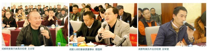 会上,成都市环保局领导就家具企业如何进行废气和粉尘治理、家具企业如何进行环评、环境监察执法的对象和步骤等家具企业重点关注的热点议题进行了梳理和讲解,并针对会议过程中企业现场提出的问题进行了耐心细致地解答。成都天子集团董事长杨家荣,成都明珠家具副总裁王瑜,成都双虎家具董事长尹显建,在会上就家具企业的环保问题与参会领导和参会企业代表进行了交流探讨。成都鑫威隆环保设备总经理史德刚、优品涂料总经理陈文斌、泰山环保设备总经理杨学辉、金臣环保设备总经理陈诠涛等成都家具行业部分品牌环保材料和设备供应服务商,也在现场就目前家具行业除尘和废气处理的新技术进行了介绍。